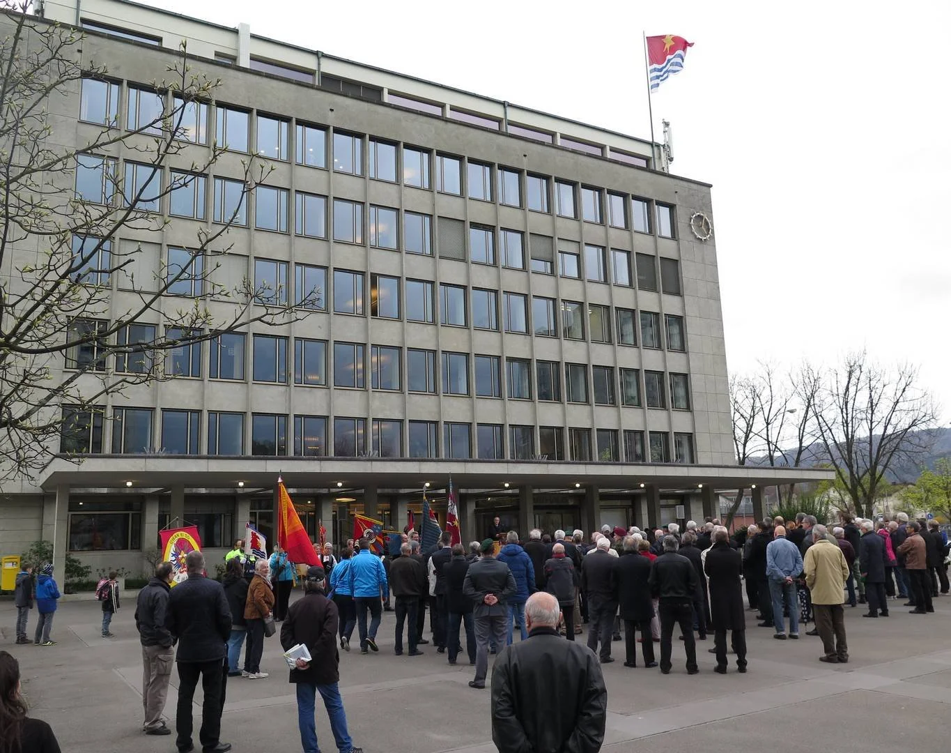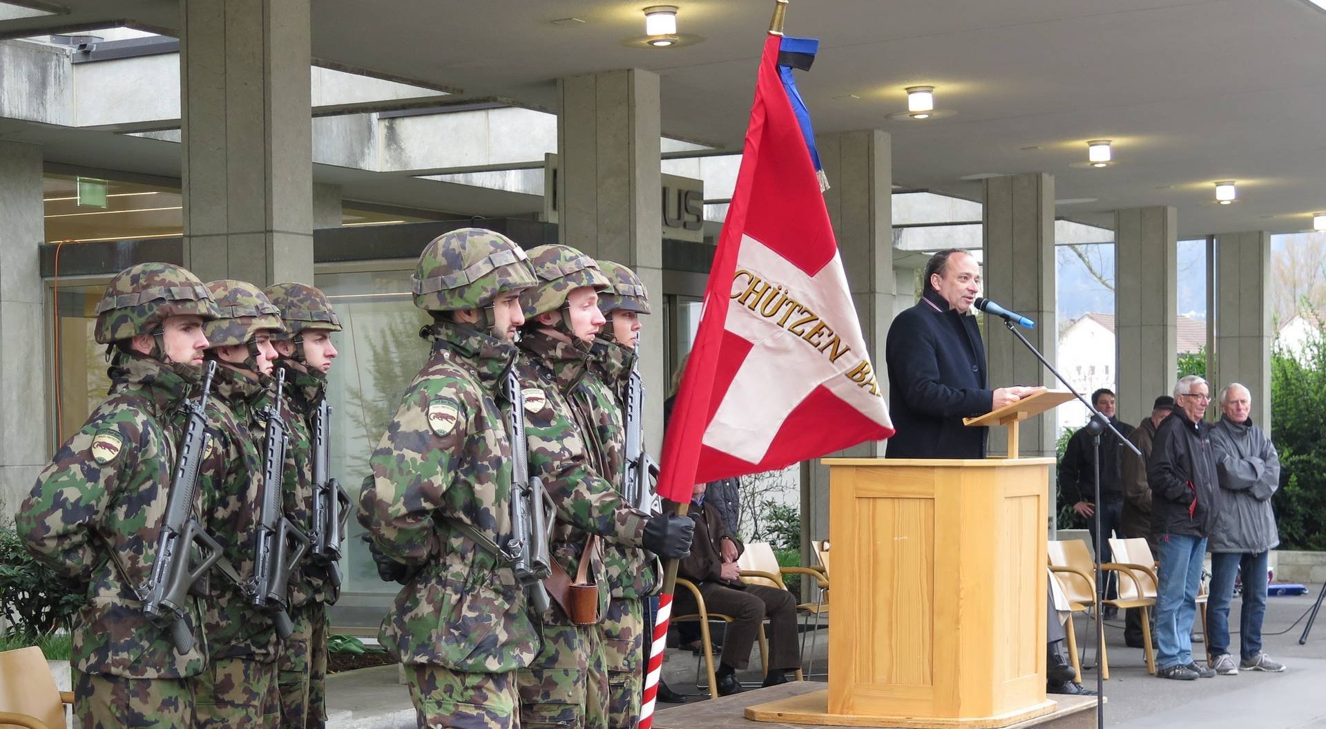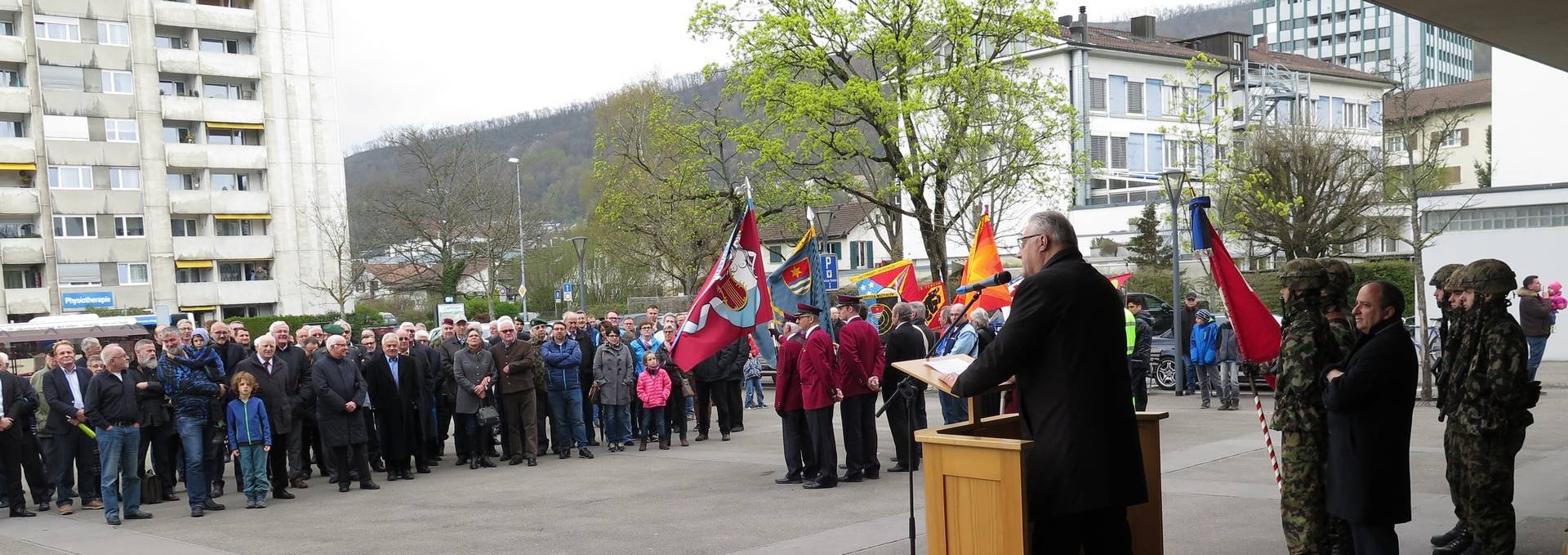 Die Fahne unseres Schützenbataillons 4 wird im Rathauseingang von Wettingen permanent ausgestellt. Am Freitag, den 08.04.2016 fand die Fahnenübernahme im Rahmen einer kleinen Feier auf dem Rathausplatz Wettingen statt.